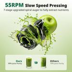 [No Mesh, No Mess – The Next Evolution in Juicing!]: Experience a breakthrough in juicing technology with our cold press juicer’s filter-free, precision-engineered chewing mechanism. The ultra-fine serrated grooves (less than 1mm apart) separate pulp and juice seamlessly, giving you smoother, nutrient-packed, and flavorful juice every time. Say goodbye to messy filters and frustrating cleanup—just drop in your ingredients, enjoy pure, fresh juice, and clean up in seconds. It’s not just a juicer; it’s your shortcut to healthier, tastier living!
