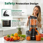 [Ultimate Safety, Worry-Free Juicing!]: Crafted from high-quality, BPA-free materials, this slow juicer features a blade-free design, a reverse function to prevent clogging, and an intelligent safety lock for added security. When you lift the lid, it automatically powers off, ensuring complete safety. With reliable, robust protection, you can juice confidently—even with kids playing nearby.