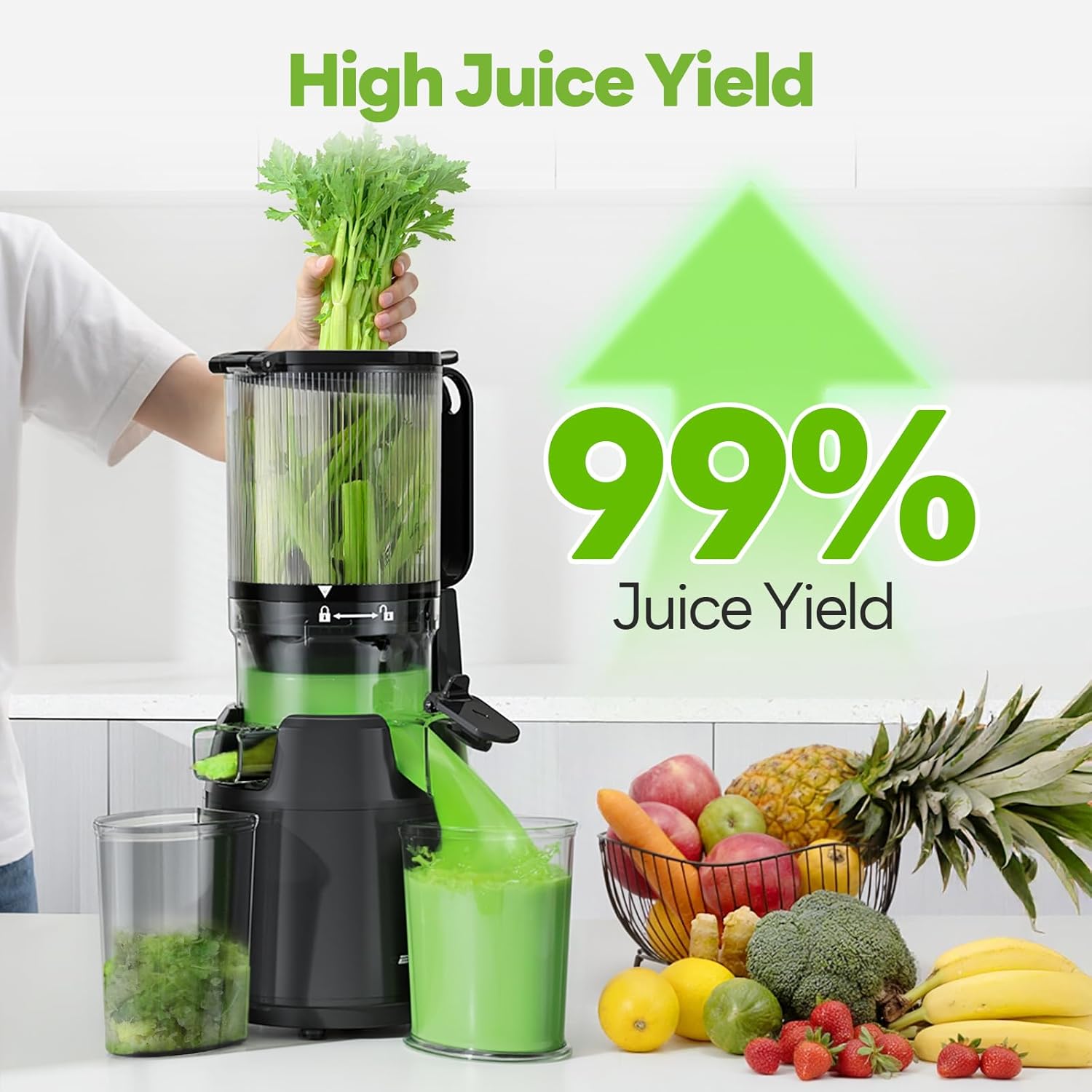 - 【99% Juice Yield & Efficient Motor】 -This juicer boasts an impressive 99% Juice Yield, maximizing every bit of your expensive fruits and veggies (no more wasted produce!). The high performance motor works quietly yet powerfully, ensuring long lasting use and making it the most cost-effective juicer machine for daily home use.