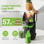 - 【Hassle-Free Prep with Large Capacity】 - This cold press juicer features a 5.5 inch wide mouth and 57oz big feed chute, letting you toss whole fruits (like pineapple, apples) and veggies (carrots, celery) directly in—no tedious chopping needed! Save precious morning time and enjoy fresh juice faster with this user-friendly juicer machine.