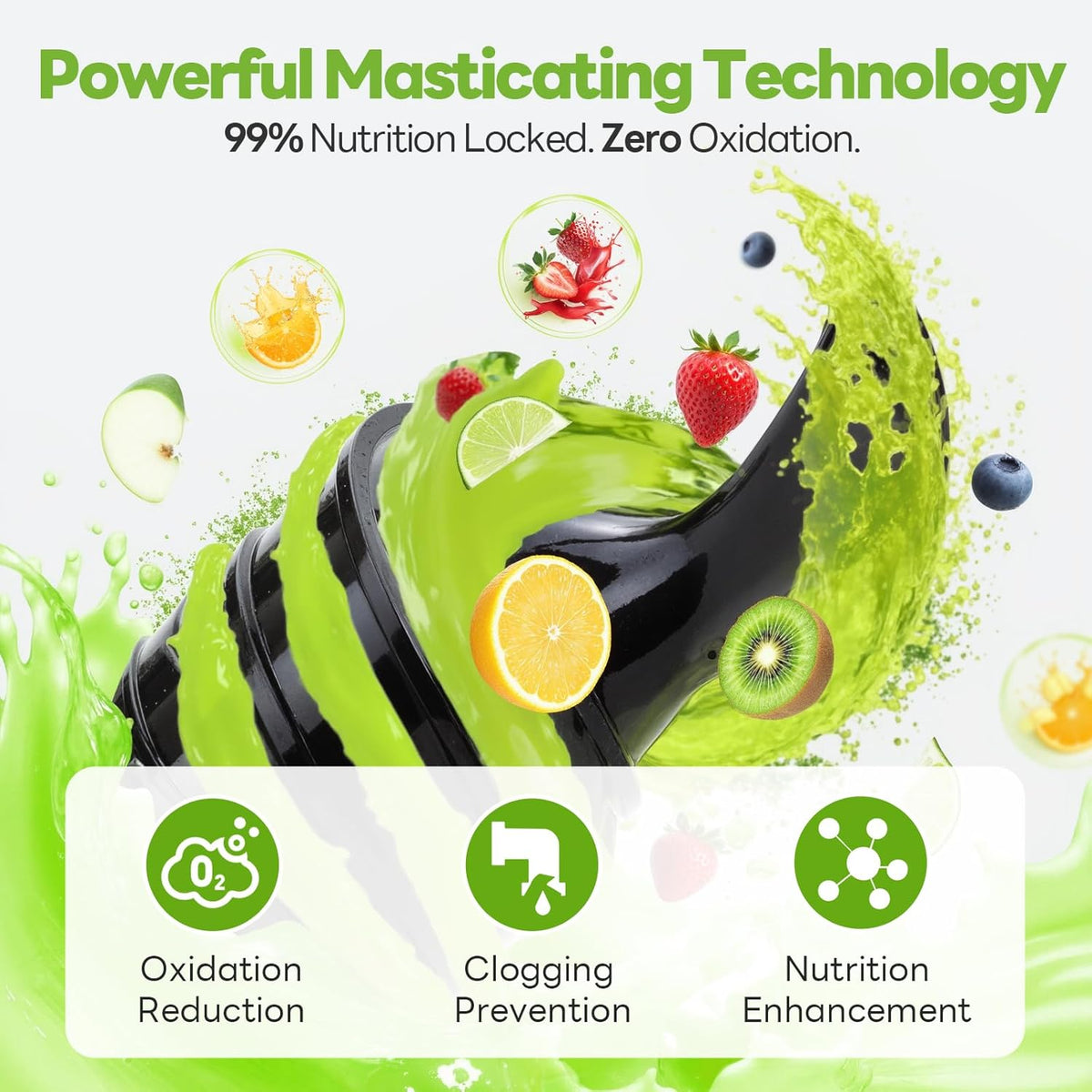 - 【One-Touch Operation & Safe Design for All】 - With simple one-touch controls, this slow masticating juicer is easy for kids, seniors, and everyone in between to use. It also has a child-safe lock, so you can feel secure while making healthy drinks. This isn’t just a juicer. It’s a reliable, family-friendly juicer machine you can trust.