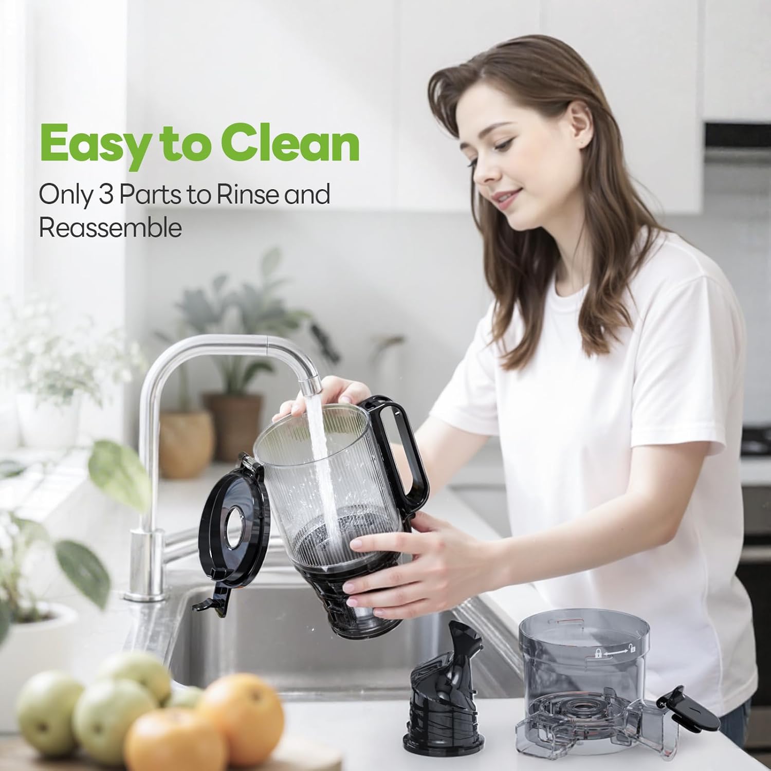 - 【Cleaning up is a snap】 - Designed for hassle-free living, this juicer assembles and disassembles in seconds with easy rinse parts, so you spend less time scrubbing and more time savoring your homemade goodness.
